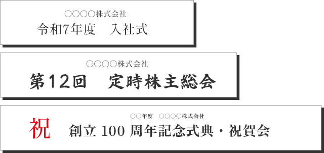 上棟式や地鎮祭、完成披露式、除幕式などで使用される式典用の吊り看板・横看板を、サイズ・内容に合わせて制作いたします。