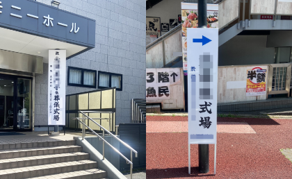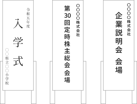 式典・イベントなどで、「一時的に設置したい」「移動や撤収が楽な看板がいい」という場面に重宝されており、コストを抑えつつ見栄えよく仕上げられるのが魅力です。